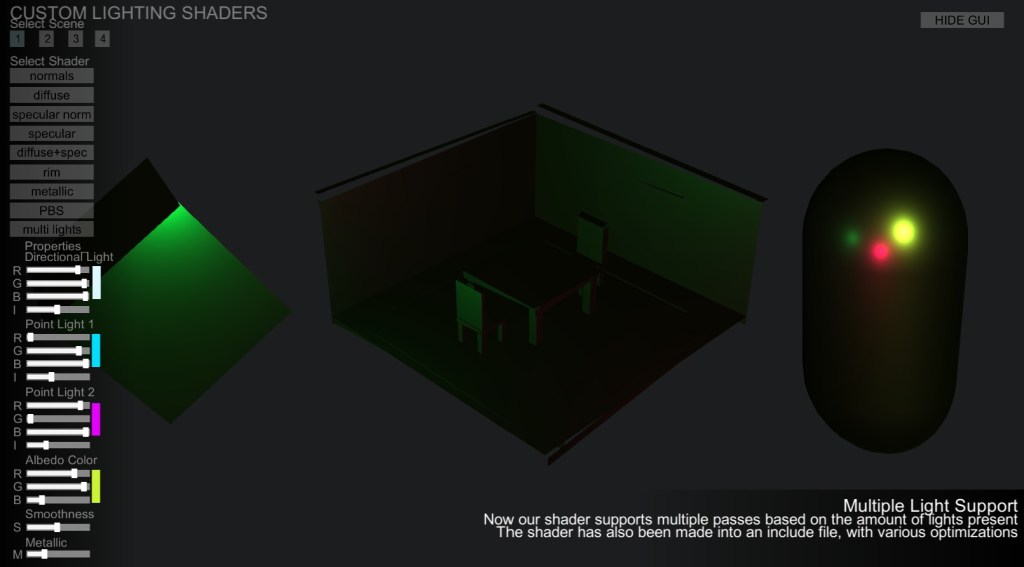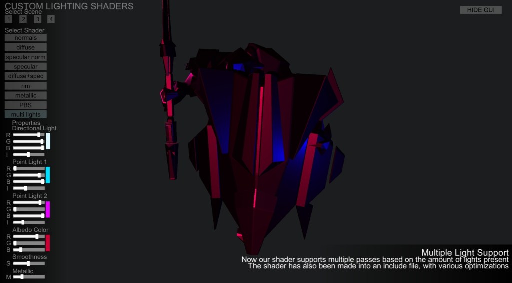 I’ve always been fascinated by shaders but found them too daunting to find the time to learn them. This project, Custom Lighting Shaders, contains several custom lighting shaders, vertex manipulation shaders, and image effects written by me. I’ve included some information on each shader, and exposed various properties so the user can mess around with them. I’ll continue updating this post as I create more shaders. Shaders are infinitely useful and applicable so I’m looking forward to applying more of them in practical ways.