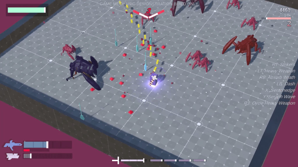 Digging out the core combat loop of KILL KNIGHT was my immediate and most critical step. From character concepting I’d established the basics – a set of Pistols for default damage, Heavy Weapons for high powered problem solving, and the Sword for utility and defense – but getting them to interact elegantly and coherently was the design challenge.